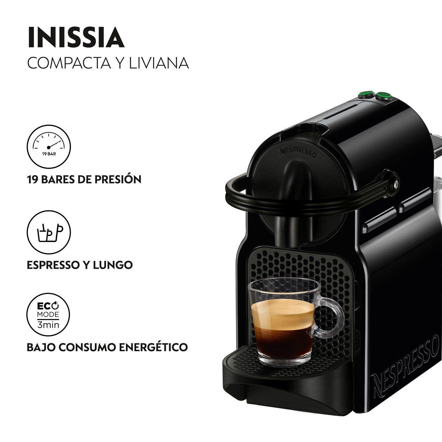 La cafetera Nespresso Inissia C40 Negra es una opción compacta, elegante y eficiente para los amantes del buen café. Con un diseño moderno y liviano, se adapta fácilmente a cualquier cocina u oficina gracias a su tamaño reducido y a su peso de apenas 2.4 kg. Esta máquina utiliza el sistema exclusivo de cápsulas Nespresso, lo que garantiza una preparación rápida, limpia y con resultados consistentes en cada taza.
