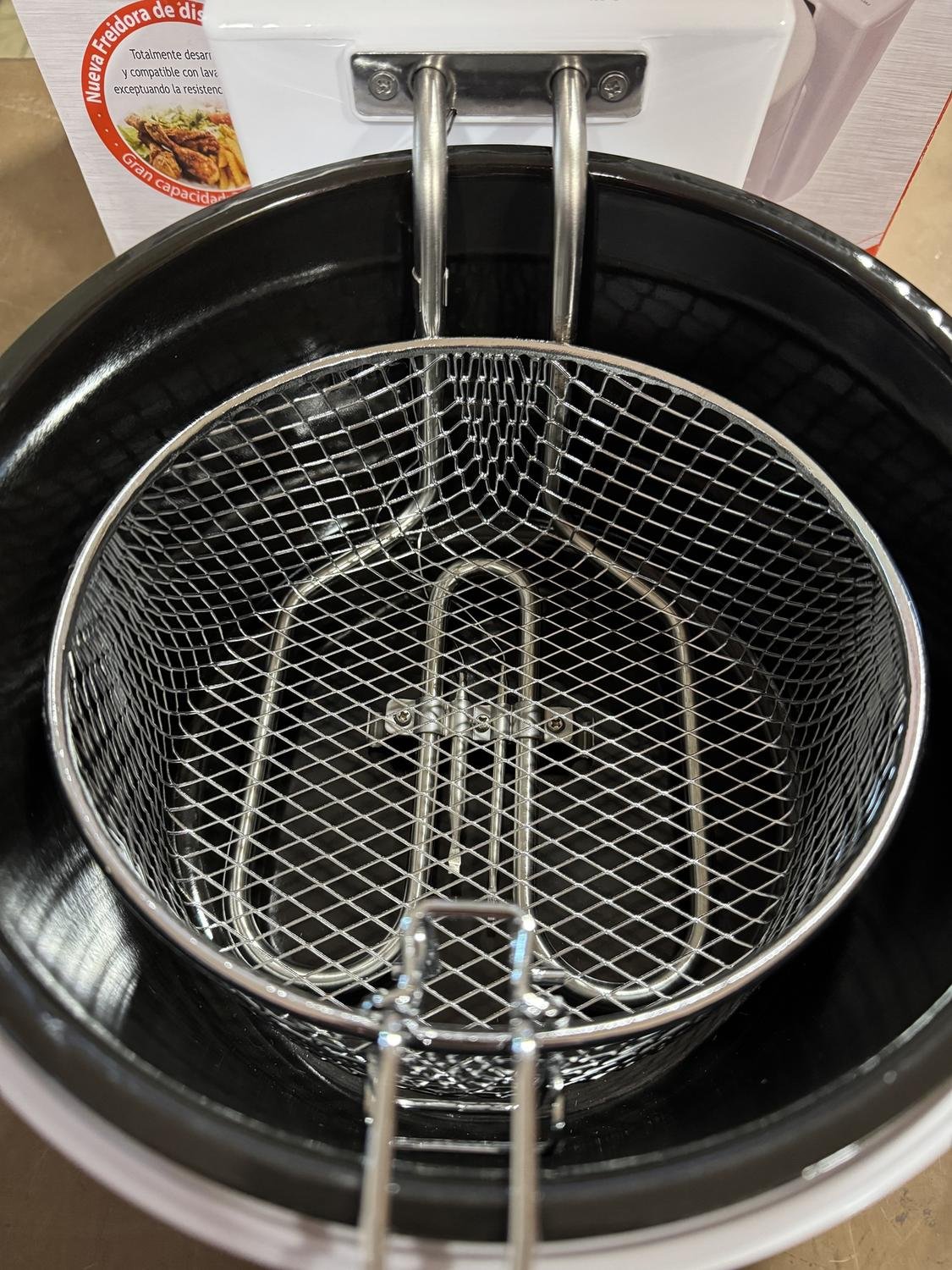 Incluye un recipiente de acero enlozado, filtro anti grasa, un visor transparente para que puedas vigilar tus cocciones cuando lo desees, y luz indicadora de funcionamiento.