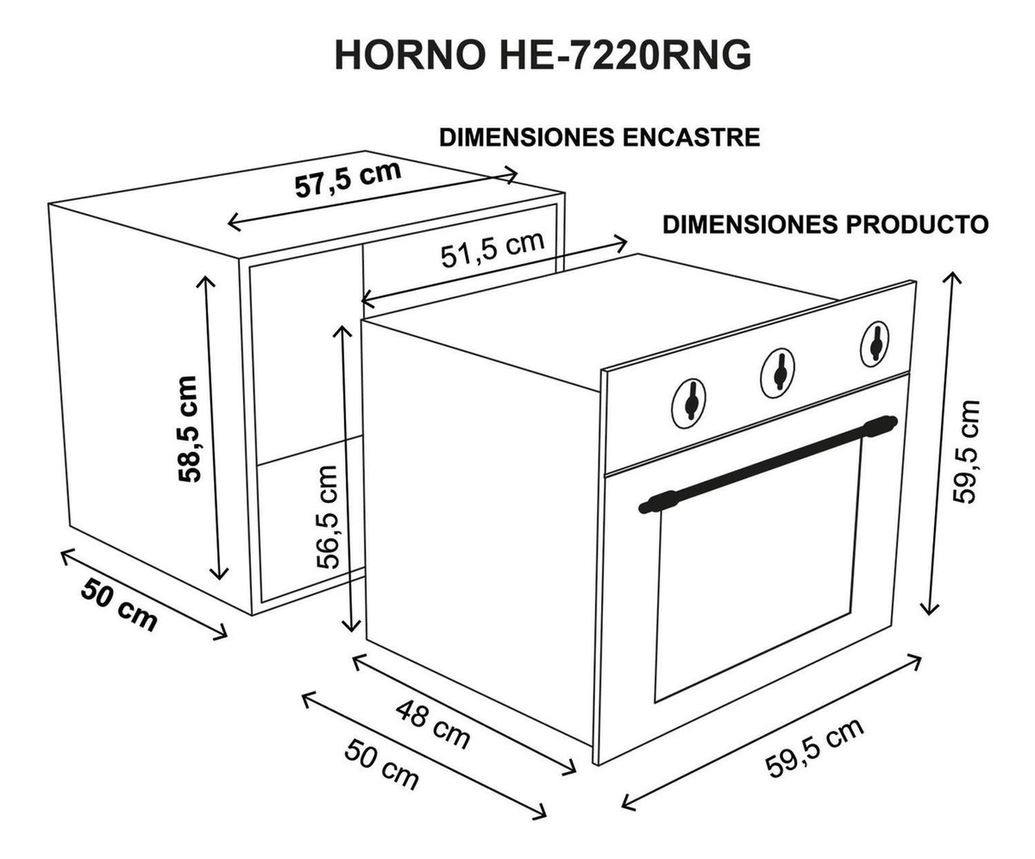 • Ancho exterior: 59.5 cm
