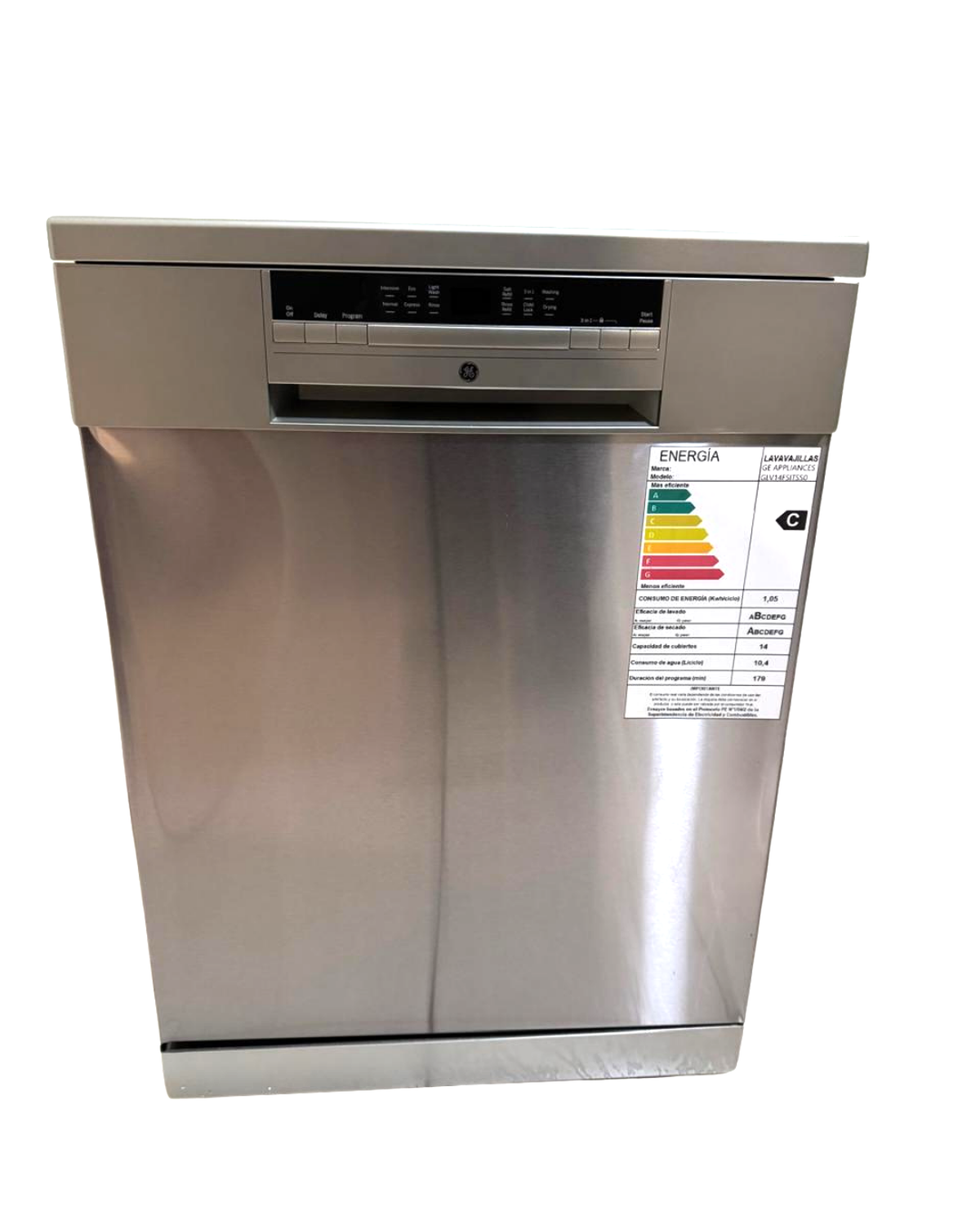 El lavavajillas General Electric GLV14FSITSS0 para 14 cubiertos combina eficiencia, funcionalidad y diseño en un equipo portable que se adapta a distintos espacios sin necesidad de empotrarlo. Su panel digital LED facilita la selección de seis programas de lavado (intenso, normal, eco, cristal, rápido y enjuague), y ofrece funciones prácticas como inicio diferido, bloqueo para niños y control de desbordes, garantizando un uso seguro e intuitivo. Cuenta con un sistema de filtrado triple y el Smart Wash System, que ajusta automáticamente el consumo de agua, ahorrando hasta un 11 % de energía en modo eco, con solo alrededor de 10–11 litros por ciclo. Su interior en acero inoxidable favorece la higiene y durabilidad, mientras que el secado por calor residual asegura piezas secas sin esfuerzo adicional. Con un nivel de ruido bajo alrededor de 50 dB, permite su uso sin generar molestias en el hogar. Sus dimensiones estándar (60 cm ancho, 84,5 cm alto, 60 cm profundidad) y peso de aproximadamente 44 kg facilitan su ubicación o traslado dentro de la cocina. Aunque presenta un detalle estético menor en la zona frontal, esto no compromete su desempeño ni funcionalidad. En conjunto, el GLV14FSITSS0 se destaca por su eficacia en limpieza, bajo consumo de energía, facilidad de uso y adaptabilidad a distintos entornos domésticos.