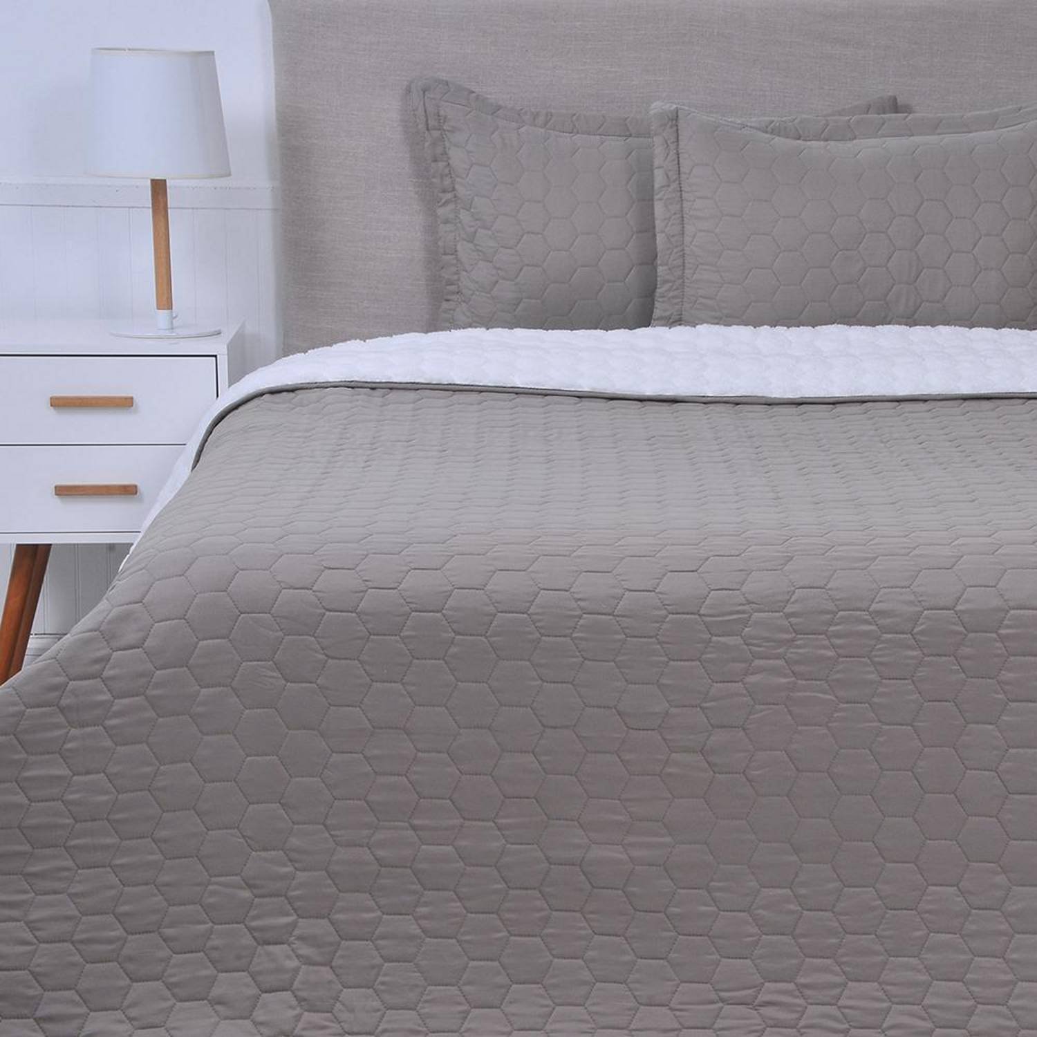 El Plumón Quilt 2 Plazas Sherpa Gris Mashini es una opción ideal para quienes buscan comodidad y calidez durante las noches frías. Confeccionado en materiales de alta calidad, combina un diseño elegante y moderno en tono gris con la suavidad del sherpa, brindando una sensación de confort superior. Su estructura tipo quilt asegura una distribución uniforme del relleno, proporcionando un abrigo óptimo sin perder ligereza. El reverso de sherpa ofrece una textura acogedora y suave al contacto con la piel. Perfecto para camas de dos plazas, este plumón es una excelente elección para mejorar la estética y el confort de tu dormitorio, añadiendo un toque de calidez y sofisticación a tu espacio.