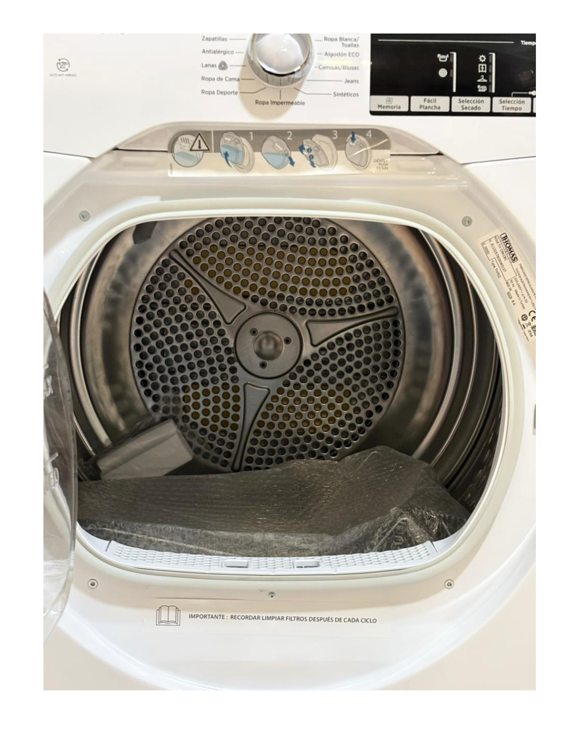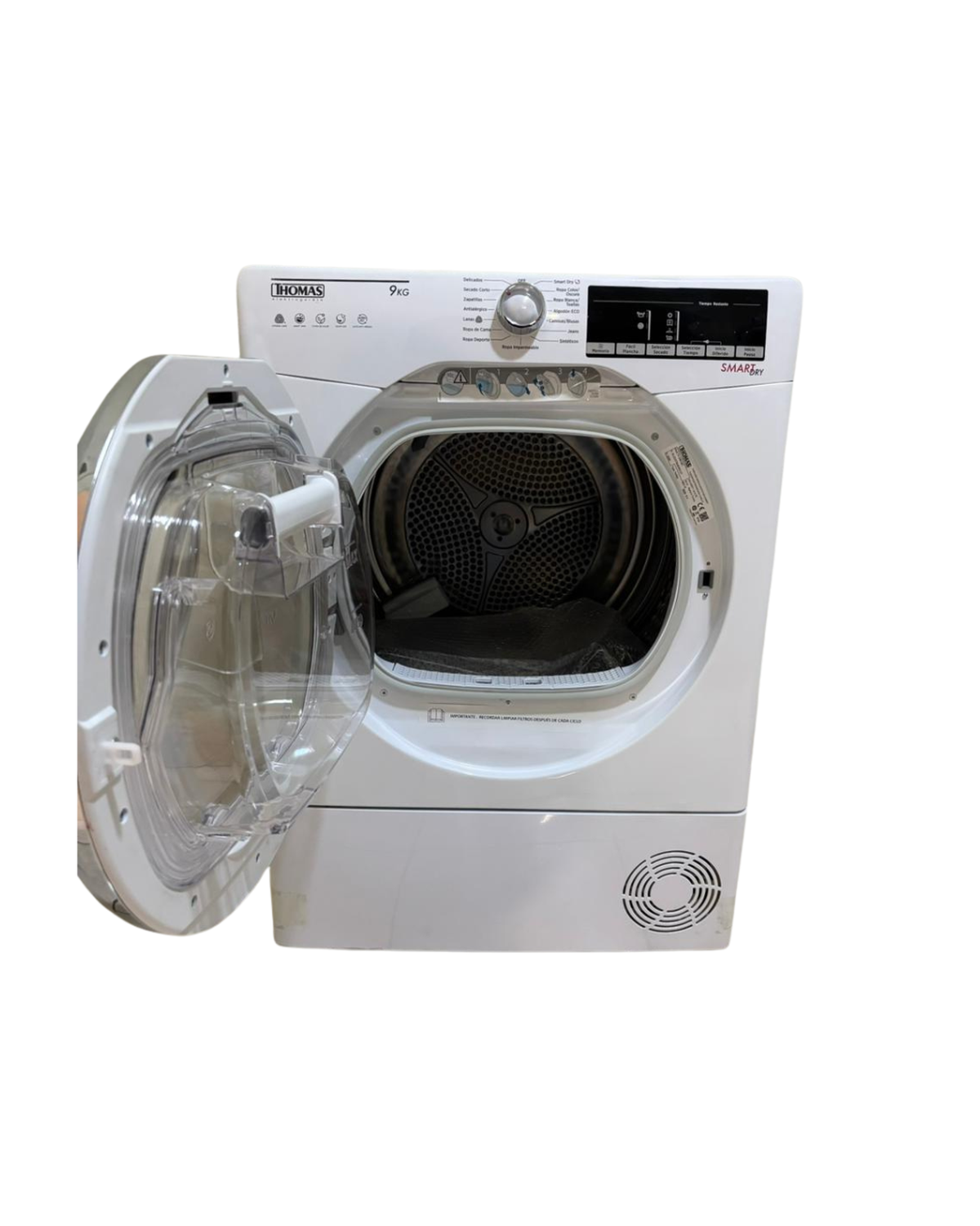 La Secadora Eléctrica 9 Kg por Condensación con Bomba de Calor TH-D9KCBC es un electrodoméstico diseñado para facilitar el secado diario de la ropa con alta eficiencia. Su capacidad de 9 kg permite manejar cargas familiares completas, incluyendo prendas grandes como toallas y sábanas. Gracias a la tecnología de bomba de calor, seca a temperaturas más bajas, protegiendo las fibras y reduciendo el desgaste de la ropa. Al funcionar por condensación, no requiere salida al exterior, lo que facilita su instalación en diferentes espacios del hogar. Ofrece programas automáticos que ajustan el ciclo según la humedad, optimizando tiempo y energía. Además, destaca por su bajo consumo eléctrico, funcionamiento silencioso y variedad de opciones para tejidos delicados. Es una solución práctica, segura y eficiente para mantener la ropa seca y suave todos los días.