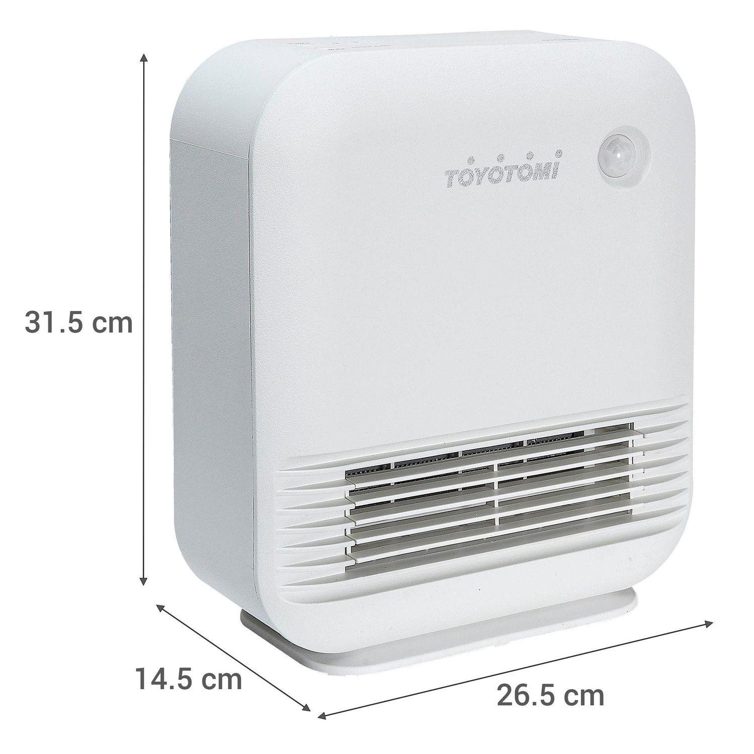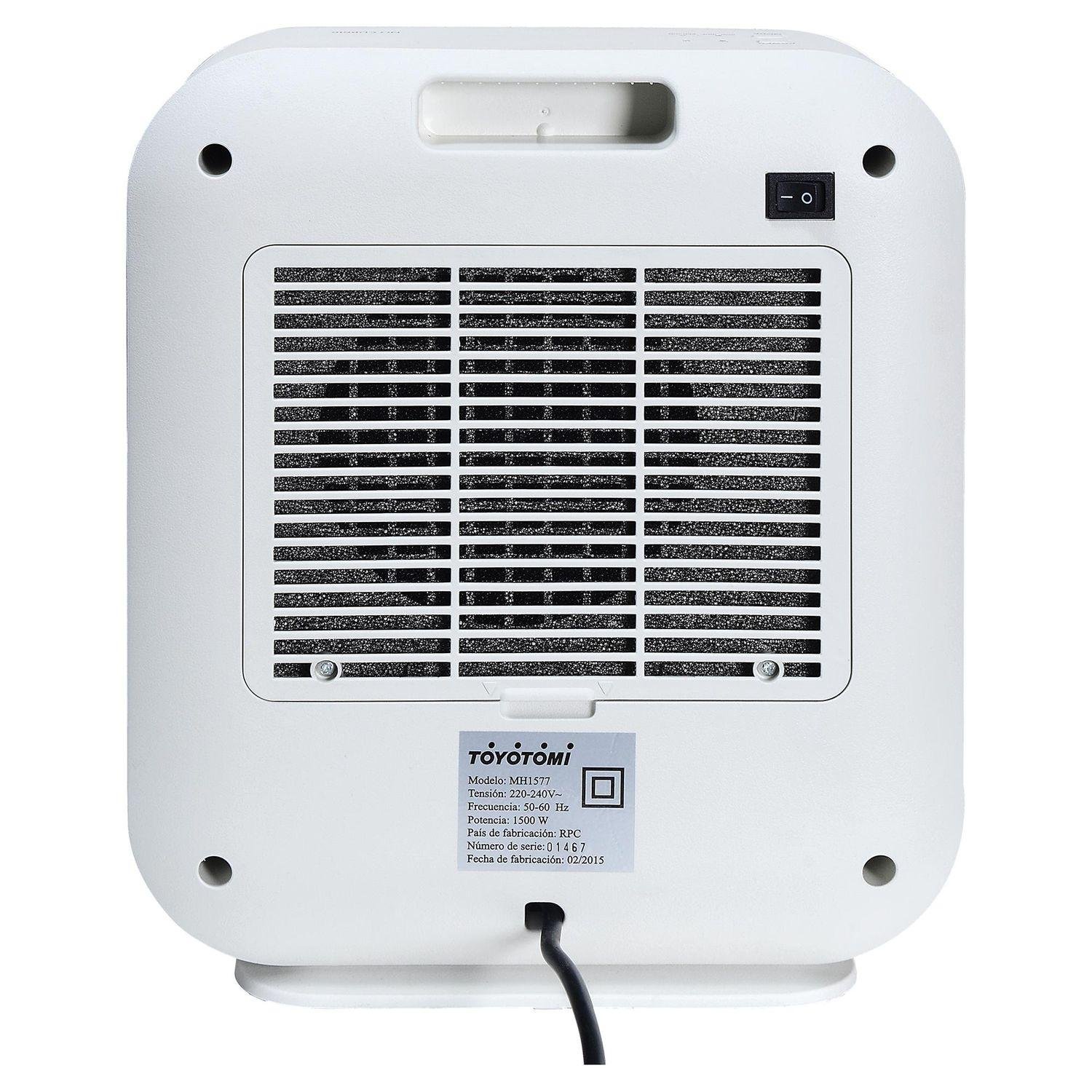 El termoventilador Toyotomi MH1577 de 1500 watts en color blanco es una solución práctica y eficiente para calentar espacios pequeños y medianos del hogar u oficina. Su diseño compacto permite ubicarlo fácilmente sobre escritorios, mesas o en el suelo, ocupando poco espacio y facilitando su transporte gracias a su peso ligero de solo 3 kilogramos. Con dimensiones de 31,2 centímetros de alto, 26,5 centímetros de ancho y 14,5 centímetros de profundidad, se adapta sin problemas a distintos ambientes, brindando un calor rápido y uniforme.